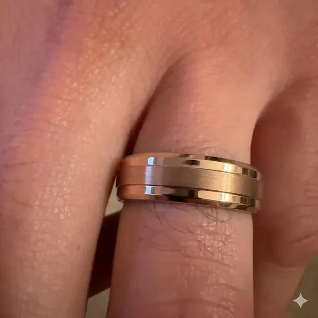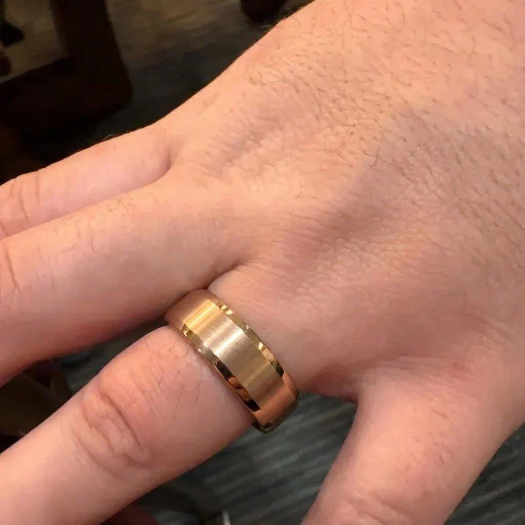 Its balanced weight feels substantial without being heavy, and its warm finish transitions easily between professional settings and everyday routines. This rose gold tungsten ring for men offers a refined alternative to traditional gold without sacrificing durability.